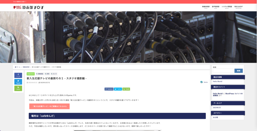 このサイトは、音声技術部と映像技術部の活動にフォーカスしています。今後,このサイトにて,「こんな収録をしたよ〜」「ここにこだわって編集しました!」「新機材〇〇を試す」などなど,公式HPやTwitter等でなかなか発信できていない技術部の活動の様子をお届けしたいと思っています!ぜひとも今後の更新をご期待ください!