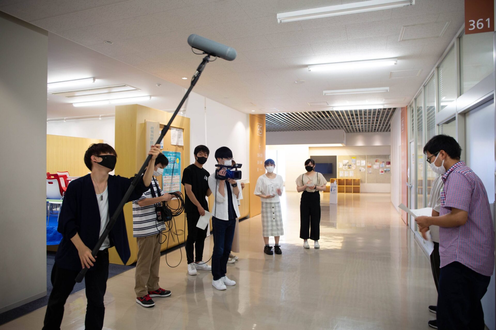 参加者全員をキャンパスごちゃまぜの6班に振り分け、それぞれ班の中で役割を決めて、お店に取材に行くという設定で撮って出しの練習を行いました。