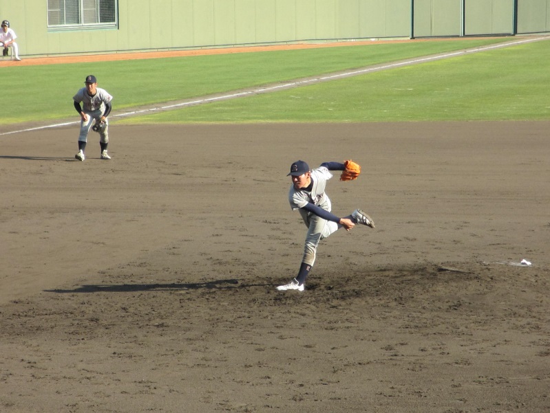2戦目11日。立命のマウンドには、初先発の3回生、福本が上がります。四死球と3連打で2点を先制されると「緊張からか福本の打たせて取るピッチングが出来ていなかった」と、監督は2番手の松田をマウンドに送ります。