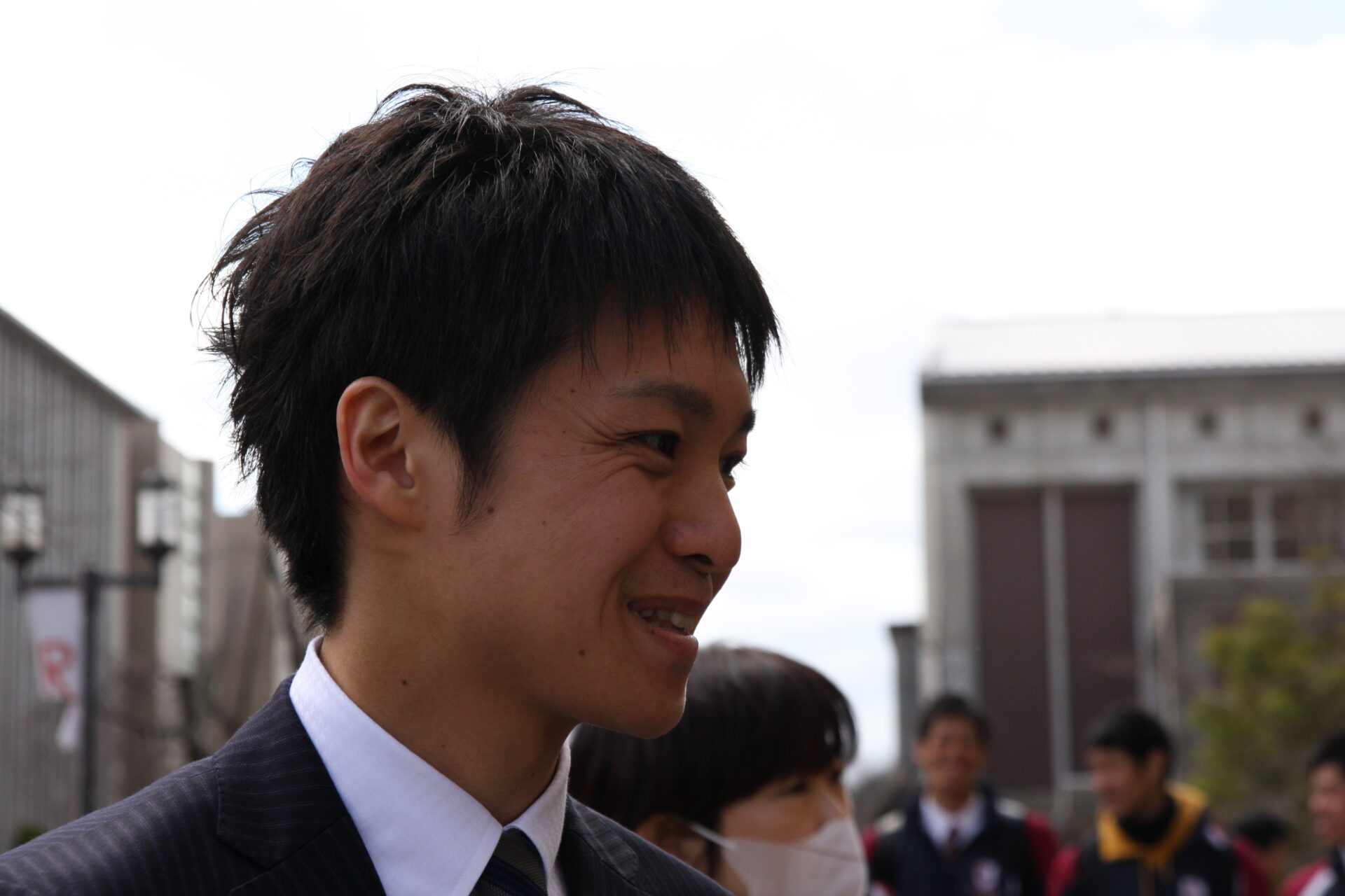 3月22日(土)、立命館大学びわこ草津キャンパスにて、2013年度立命館大学卒業式が行われました。 晴天に恵まれた爽やかな卒業式となりました。 式を終えた卒業生は、在校生の歓声に迎えられながら、笑顔で写真撮影などをしていました。 応援団の演舞も行われ、元気の良い応援に卒業生達は大いに盛り上がっていました。 卒業生の方にインタビューを行いました!漣航平さん(薬学部)